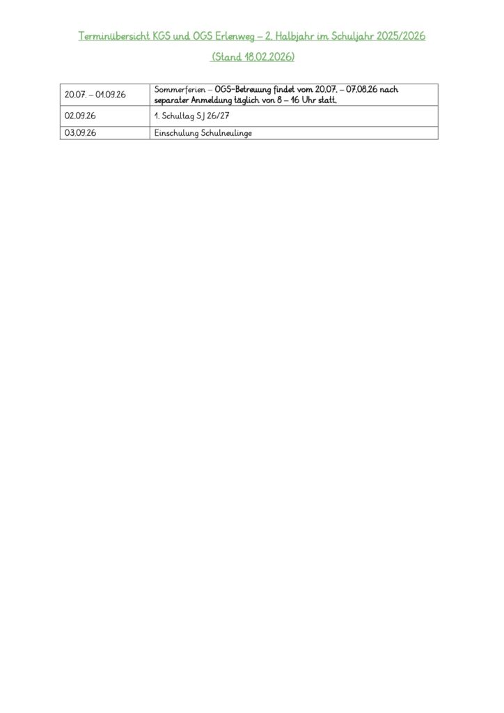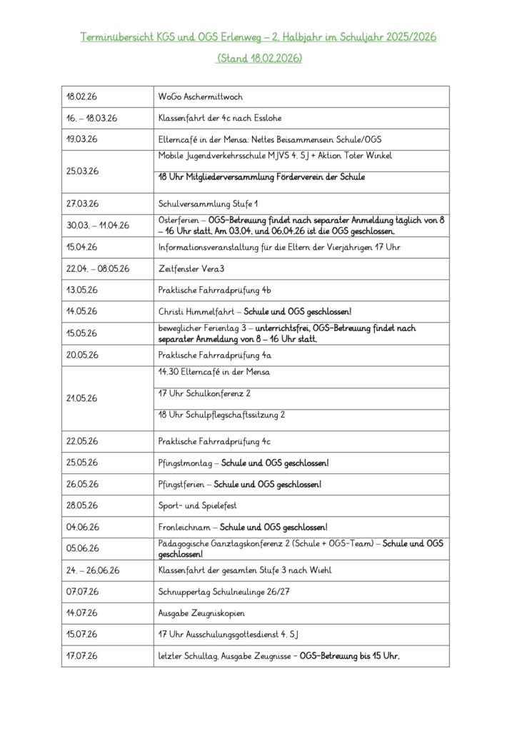 Termine und Aktuelles Hier finden Sie unsere Termine für das zweite Halbjahr im Schuljahr 2025/26 als PDF-Datei. (Stand 24.02.26)
